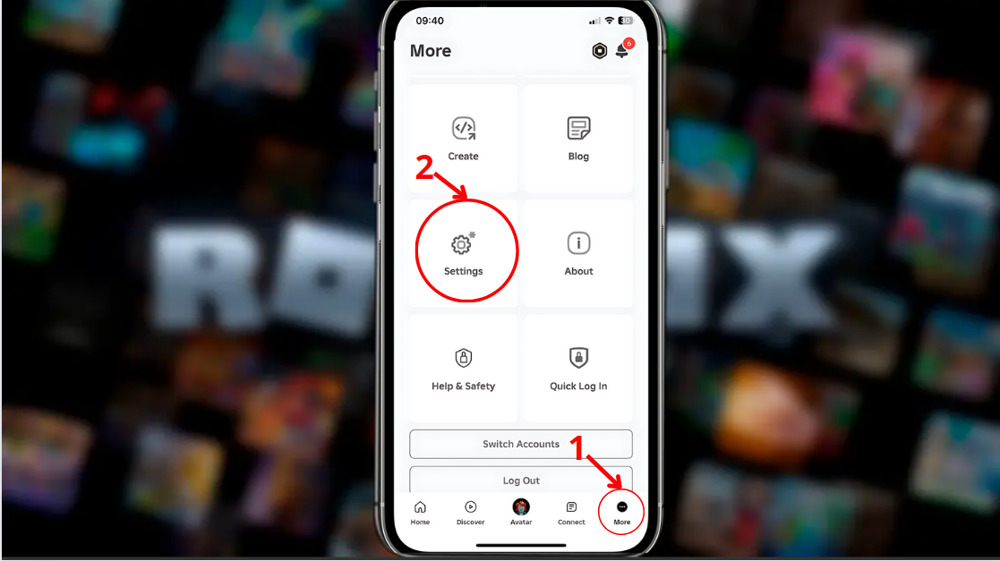 Langkah 1: Masuk ke aplikasi Roblox, tekan "More" > masuk ke "Settings"